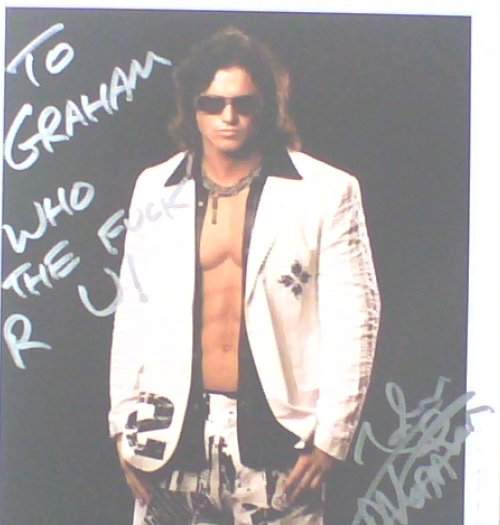 What do you remember? Morrison and The Miz strutted in to the hotel lobby at about 4am, excitedly rambling on and on to their security guy, before Morrison stops mid sentence, points at me and says “Wait. Who the fuck are you?”. He then proceeded to offer me a signed photo before the pair made their way to the elevators to pack for their 6am flight.